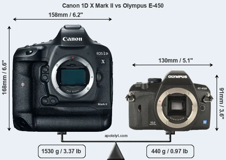 | Body Specs | Canon 1D X Mark II | Olympus E-450 |