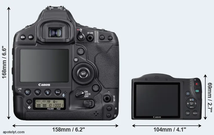 The above size and weight comparisons are to some extent incomplete and possibly misleading, as the SX420 has a lens built in, whereas the 1DX Mark III is an interchangeable lens camera that requires a separate lens. Attaching the latter will add extra weight and bulk to the setup. You can compare the optics available for the 1DX Mark III and their specifications in the Canon EF Lens Catalog.