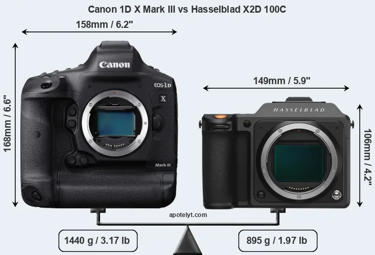 Specifications: Canon 1D X Mark III vs Hasselblad X2D 100C
