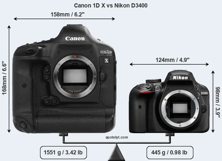 | Body Specs | Canon 1D X | Nikon D3400 |