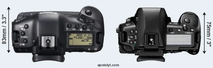 | 3. | Canon 1Ds Mark II | 156 mm | 158 mm | 80 mm | 1215 g | 1200 | Y | Sep 2004 | US$ 7 999 | ebay.com | |