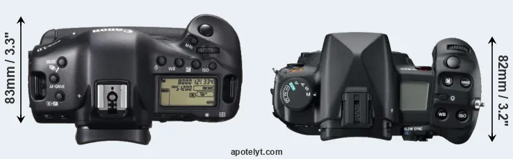| 17. | Sony A900 | 156 mm | 117 mm | 82 mm | 895 g | 880 | Y | Sep 2008 | US$ 2 999 | ebay.com | |
