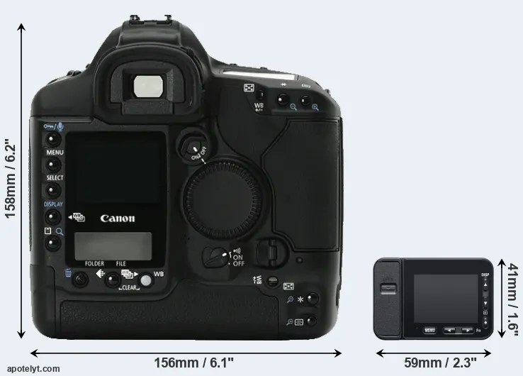 | 6. | Canon 1Ds | 156 mm | 158 mm | 80 mm | 1265 g | 600 | Y | Sep 2002 | US$ 8 999 | ebay.com | |