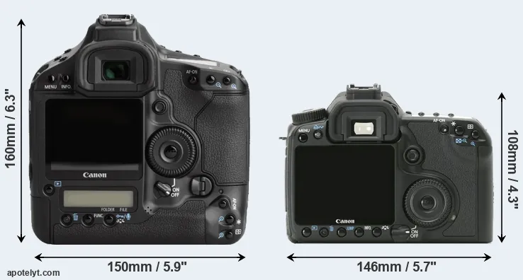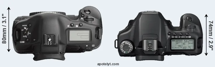 | 5. | Canon 1Ds Mark II | 156 mm | 158 mm | 80 mm | 1215 g | 1200 | Y | Sep 2004 | US$ 7 999 | ebay.com | |