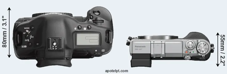 Size Canon 1Ds Mark III vs Panasonic GX7