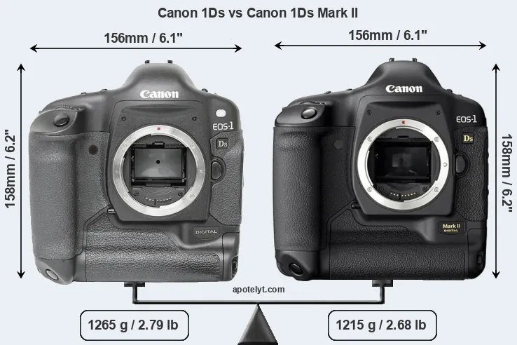 Size Canon 1Ds vs Canon 1Ds Mark II