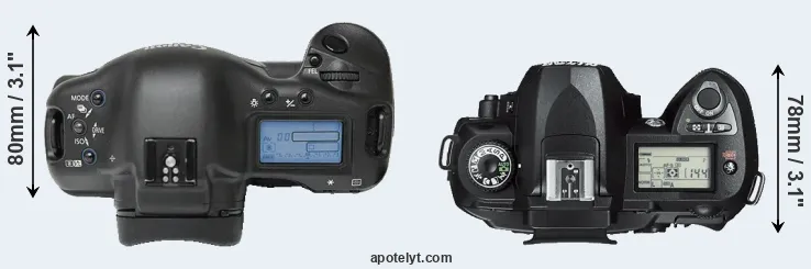| 7. | Canon 1Ds Mark II | 156 mm | 158 mm | 80 mm | 1215 g | 1200 | Y | Sep 2004 | US$ 7 999 | ebay.com | |
