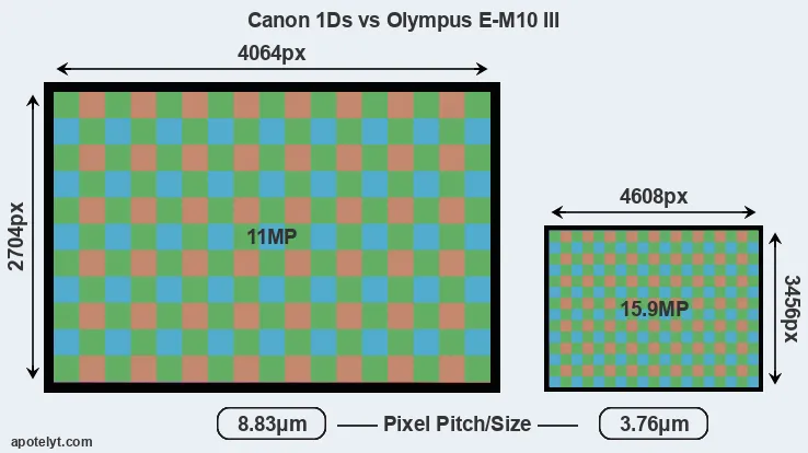 | Sensor Specs | Canon 1Ds | Olympus E-M10 III |