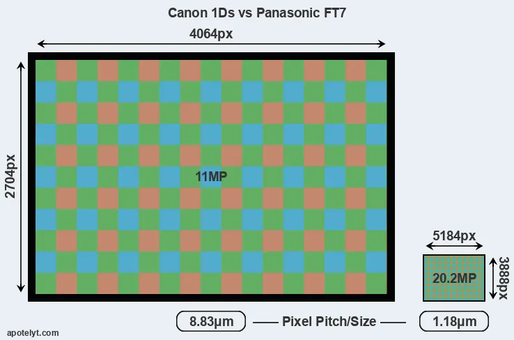 | Sensor Specs | Canon 1Ds | Panasonic FT7 |