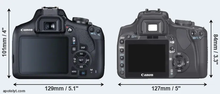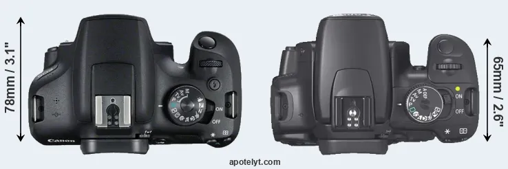 | 1. | Canon 2000D | 129 mm | 101 mm | 78 mm | 475 g | 500 | n | Feb 2018 | US$ 449 | amazon.com | |