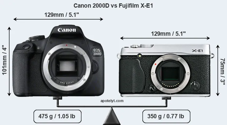 Size Canon 2000D vs Fujifilm X-E1