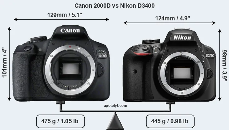 | Body Specs | Canon 2000D | Nikon D3400 |