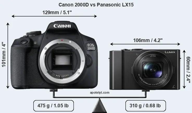 | Body Specs | Canon 2000D | Panasonic LX15 |