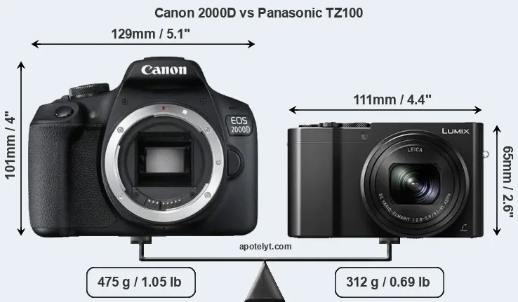 | Body Specs | Canon 2000D | Panasonic TZ100 |