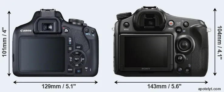 Going beyond this snapshot of core features and characteristics, what are the differences between the Canon EOS 2000D and the Sony Alpha SLT-A68? Which one should you buy? Read on to find out how these two cameras compare with respect to their body size, their imaging sensors, their shooting features, their input-output connections, and their reception by expert reviewers.