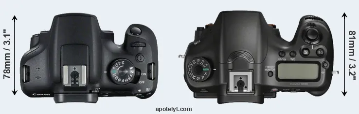 | 3. | Canon 77D | 131 mm | 100 mm | 76 mm | 540 g | 600 | n | Feb 2017 | US$ 899 | ebay.com | |
