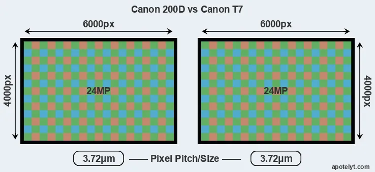 | Sensor Specs | Canon 200D | Canon T7 |