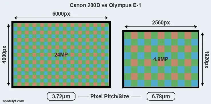 | Sensor Specs | Canon 200D | Olympus E-1 |