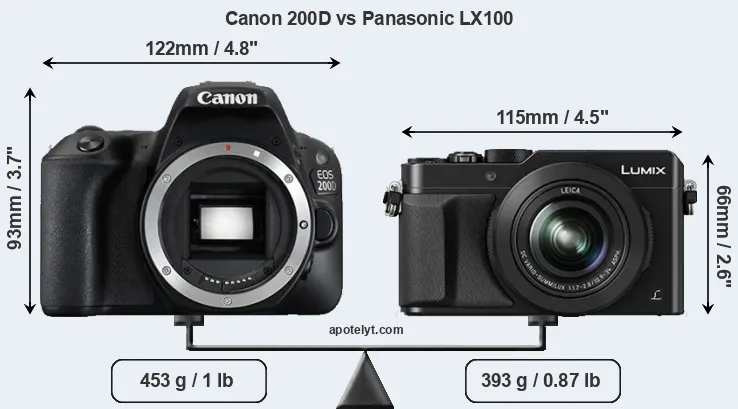 | Body Specs | Canon 200D | Panasonic LX100 |