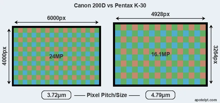| Sensor Specs | Canon 200D | Pentax K-30 |