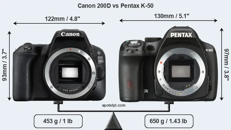 | Body Specs | Canon 200D | Pentax K-50 |