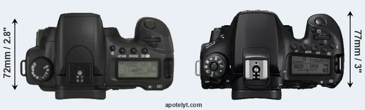 | 11. | Canon 80D | 139 mm | 105 mm | 79 mm | 730 g | 960 | Y | Feb 2016 | US$ 1 199 | ebay.com | |