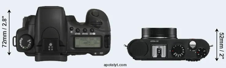 If the front view area (width x height) of the cameras is taken as an aggregate measure of their size, the Leica X2 is considerably smaller (44 percent) than the Canon 20D. In this context, it is worth noting that neither the 20D nor the X2 are weather-sealed.