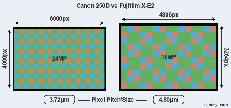 | Sensor Specs | Canon 250D | Fujifilm X-E2 |