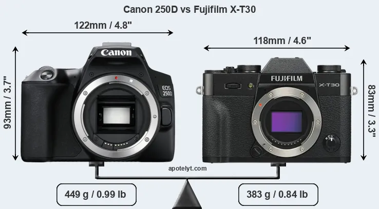 | Body Specs | Canon 250D | Fujifilm X-T30 |