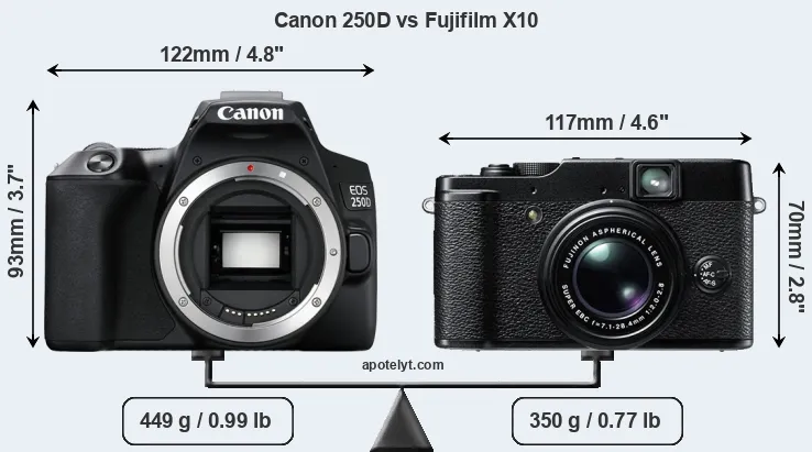 | Body Specs | Canon 250D | Fujifilm X10 |