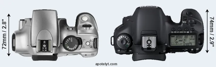 | 1. | Canon 300D | 142 mm | 99 mm | 72 mm | 649 g | 400 | n | Aug 2003 | US$ 899 | ebay.com | |