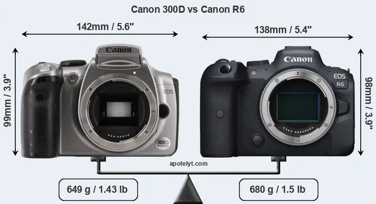 | Body Specs | Canon 300D | Canon R6 |
