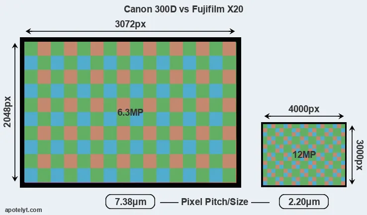 | Sensor Specs | Canon 300D | Fujifilm X20 |