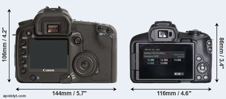 Technology-wise, the R50 uses a more advanced image processing engine (DIGIC X) than the 30D (DIGIC 2), with benefits for noise reduction, color accuracy, and processing speed.