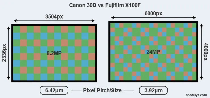 | Sensor Specs | Canon 30D | Fujifilm X100F |