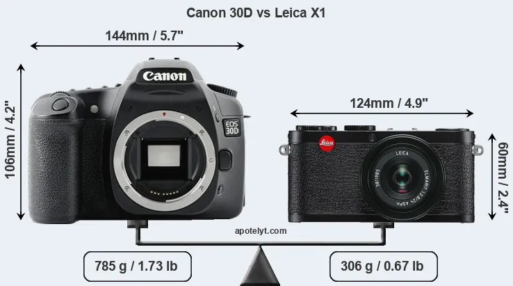 Going beyond this snapshot of core features and characteristics, what are the differences between the Canon EOS 30D and the Leica X1? Which one should you buy? Read on to find out how these two cameras compare with respect to their body size, their imaging sensors, their shooting features, their input-output connections, and their reception by expert reviewers.