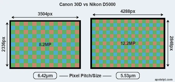 | Sensor Specs | Canon 30D | Nikon D5000 |