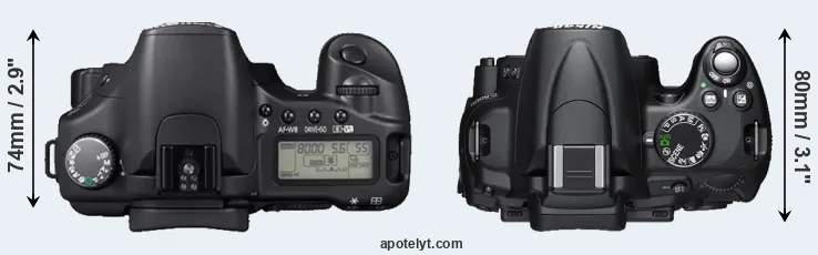 | 6. | Canon 40D | 146 mm | 108 mm | 74 mm | 822 g | 750 | n | Aug 2007 | US$ 1 299 | ebay.com | |