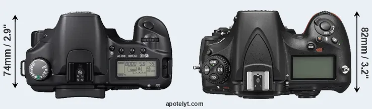 | 2. | Nikon D810 | 146 mm | 123 mm | 82 mm | 980 g | 1200 | Y | Jun 2014 | US$ 3 299 | ebay.com | |