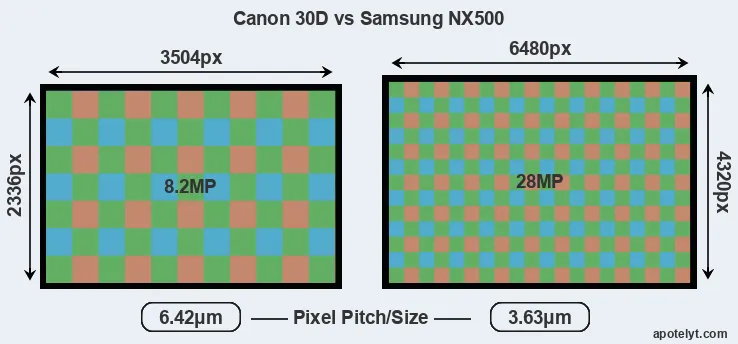 | Sensor Specs | Canon 30D | Samsung NX500 |