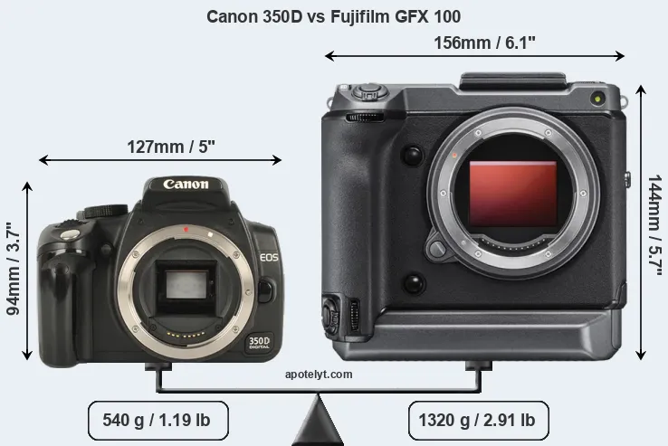| Body Specs | Canon 350D | Fujifilm GFX 100 |