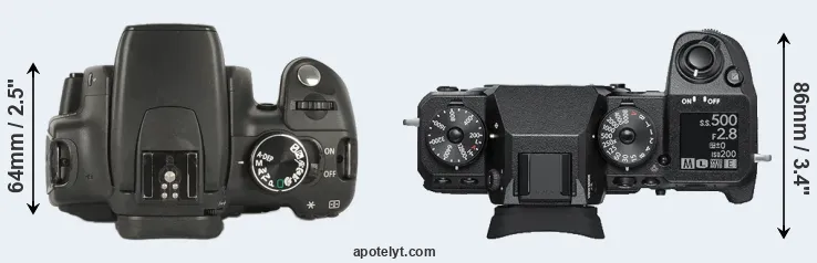 | Body Specs | Canon 350D | Fujifilm X-H1 |