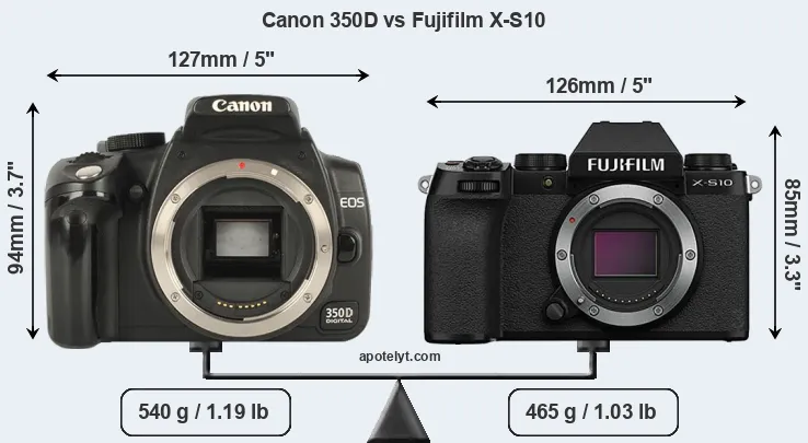 | Body Specs | Canon 350D | Fujifilm X-S10 |