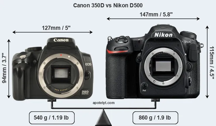 | Body Specs | Canon 350D | Nikon D500 |