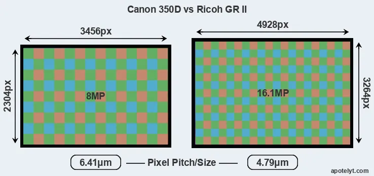 | Sensor Specs | Canon 350D | Ricoh GR II |