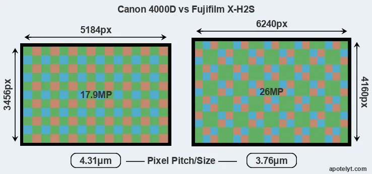 | Sensor Specs | Canon 4000D | Fujifilm X-H2S |
