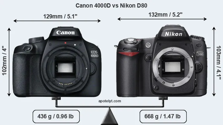 | Body Specs | Canon 4000D | Nikon D80 |