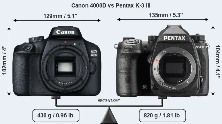 | Body Specs | Canon 4000D | Pentax K-3 III |