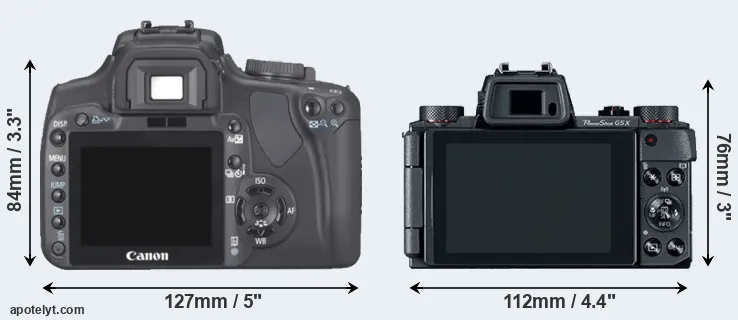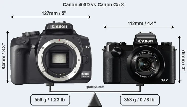 | Shooting Specs | Canon 400D | Canon G5 X |
