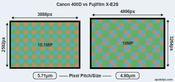| Sensor Specs | Canon 400D | Fujifilm X-E2S |